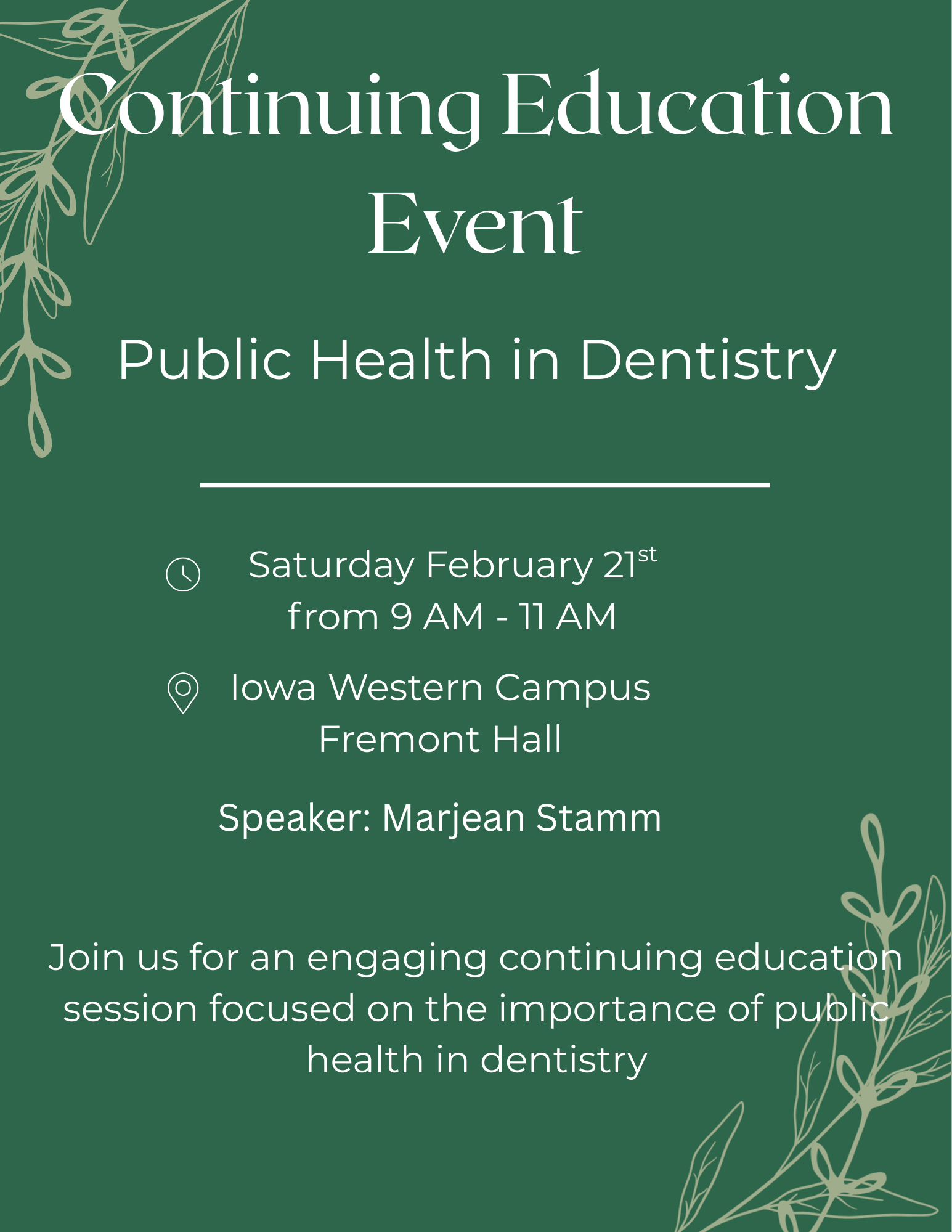 Join us for a CE Course at Iowa Western Community College on Saturday, February 21st.